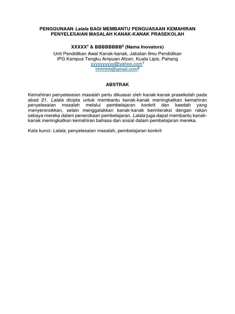 Dengan itu guru di tempat lain juga dapat berkongsi dan menggunakan bahan inovasi ini. Penulisan abstrak biasanya terletak pada halaman dari awal tulisan meskipun penyusunannya dilakukan pada tahap paling akhir. 1 Potensi dan masalah 2 Mengumpulkan.